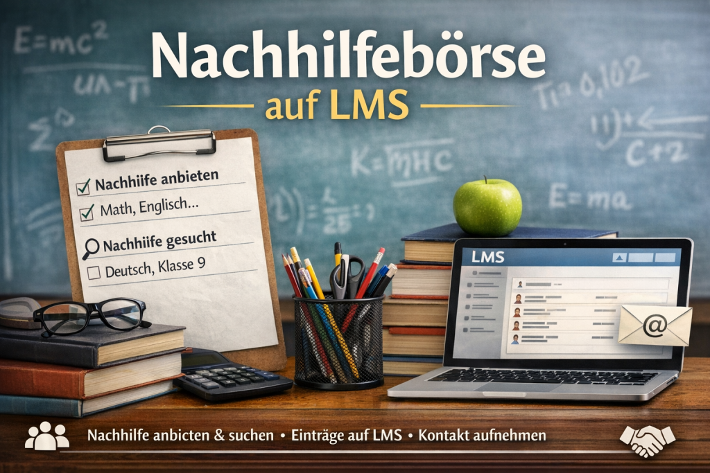 Wir möchten euch und Ihnen die neu eingerichtete Nachhilfebörse auf LMS vorstellen. Über diese Plattform können Schülerinnen und Schüler sowohl Nachhilfe anbieten als auch gezielt nach Unterstützung in verschiedenen Fächern[…]