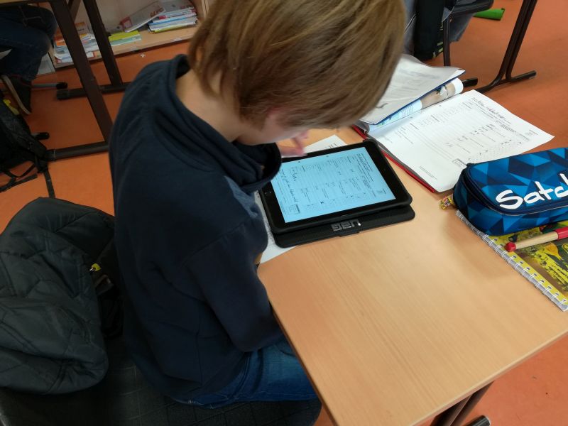 Nachdem letztes Jahr die Entscheidung gefallen war, in einer naturwissenschaftlichen Klasse tabletgestützten Unterricht einzuführen, fand sich schnell eine Gruppe experimentierfreudiger Lehrkräfte zusammen, die Lust hatten, dieses Pilotprojekt mitzugestalten, und sich auch von Verzögerungen zum Beispiel bei der Lieferung der Tablets nicht abschrecken ließen. Ende September konnten die Tablets zum ersten Mal an die Schüler(innen) der 5a ausgegeben und im Unterricht in einem modern eingerichteten Klassenraum eingesetzt werden. Nach dem ersten Schulhalbjahr möchten wir Bilanz ziehen.