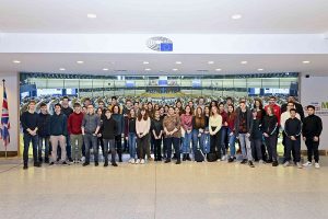 Alle Schülerinnen und Schüler des Europakurses der Jahrgangsstufe 9 und fast alle Schülerinnen und Schüler des Sozialwissenschaftskurses der Q1 machten sich am 30.01.2020 zusammen mit zwei Fachlehrerinnen, Frau Kirch und Frau Deuster, sowie dem Schulleiter Herrn Mombaur auf den Weg nach Brüssel zum Europäischen Parlament.