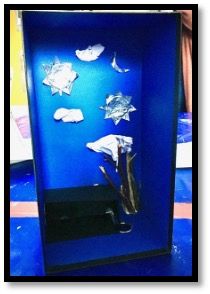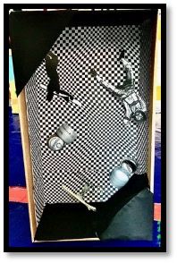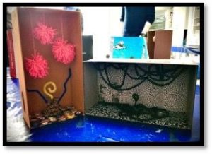 Entweder alleine oder in kleinen Gruppen von zwei bis drei Personen bekamen wir Schuhkartons zur Verfügung gestellt, die als Raum dienen sollten und zudem alles Mögliche an Bastelartikeln. Um unseren Raum zu gestalten, hatten wir ungefähr 45 Minuten Zeit. Am Ende stellten wir alle Kartons auf einen langen Tisch nebeneinander und jeder präsentierte sein Ergebnis. Es war interessant zu sehen, wie unterschiedlich die Ergebnisse waren und zu erfahren, welche Ideen dahinter steckten.