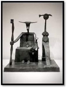 Wir haben uns auch eine seiner Plastiken angesehen. Bei dieser konnte man den Schaffensprozess erahnen, da man in einzelnen Elementen Alltagsgegenstände, wie bspw. eine Milchflasche, einen Schuh oder eine Gitarre, wiedererkennen konnte.
