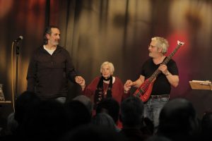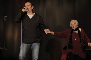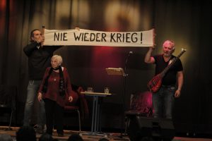 Mit zahlreichen Lesungen wie am Mittwoch in der Marienschule hat Esther Bejarano ihr Versprechen, von den Gräueltaten zu berichten, eingehalten. Von ihrem Publikum, von dem bis zu diesem Augenblick kein einziges Geräusch zu hören war, wurde sie mit langanhaltenden stehenden Ovationen belohnt. “Es ist etwas völlig anderes, das alles von einem Menschen zu hören, der wirklich dabei war”, kommentierte Marienschülerin Jula. “Die Überzeugung, mit der sie Auftritt, damit so etwas nie wieder passiert, ist bewundernswert”, stimmte Klassenkameradin Melina zu. Ihr Statement gegen den Faschismus machte Esther Bejarano am Mittwoch jedoch nicht nur anhand ihrer Lesung deutlich. Zum Abschluss holte sie sich mit Sohn Jorem Bejarano und Adoptivenkel Kutlu Yurtseven musikalische Unterstützung auf die Bühne. Bei Liedvorträgen wie der Hymne der israelischen “Frieden-Jetzt”-Bewegung stimmte die 95-jährige Live mit ein und begeisterte sogar mit einigen vorsichtigen Tanzschritten. “Die Vergangenheit darf nicht vergessen werden”, so Yurtseven. “Wir müssen unser Schweigen brechen und dürfen nicht wegsehen.”