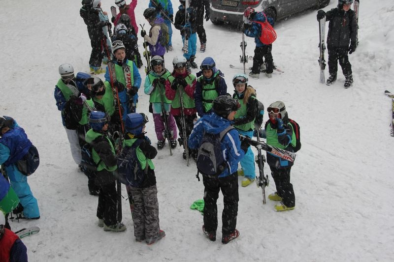 Sie haben die Skikarten bekommen und wurden in zwei Gruppen aufgeteilt: Die, die die Kurven relativ gut konnten, fuhren auf einem anderen Hügel als die, die noch ein bisschen mehr Übung brauchten (die blieben auf dem sehr leichten Hügel). Insgesamt haben so aber alle Fortschritte gemacht.
