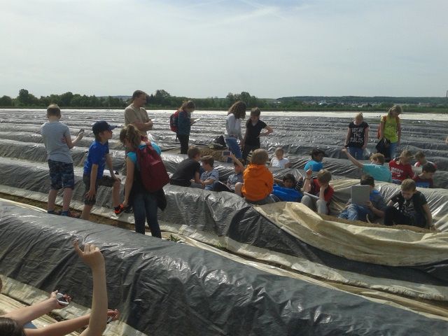 Angefangen bei der Säuberung, dem Zuschnitt und der computergesteuerten Vermessung sowie Sortierung bis hin zur vollautomatischen Schälung und dem Verkauf im eigenen Hofladen konnten die jungen Erdkundler sämtliche Verarbeitungsschritte der vor kurzem frisch geernteten Spargelstangen live miterleben. Natürlich führte uns Herr Schmitz auch ins Feld, wo er uns ausgiebig über den Anbau und die Ernte des Spargels informierte und das „Geheimnis“ der schwarz-weißen Folie lüftete.