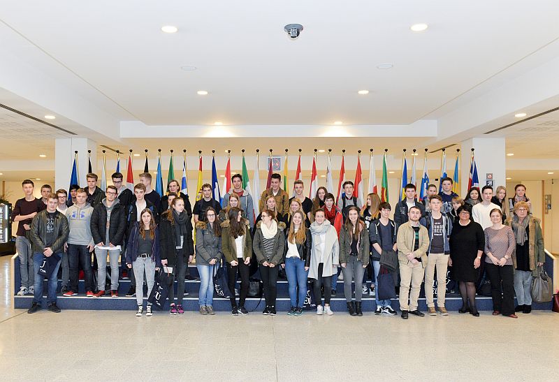 Europa und die Europäische Union werden an der Marienschule Euskirchen nicht nur im Unterricht „theoretisch“ betrachtet, sondern auch im Rahmen einer Exkursion in das Zentrum Europas – Brüssel – erfahrbar gemacht. Am 26.01.2016 besuchten 43 Schülerinnen und Schüler aus den Jahrgangsstufen 9, 11 und 12 die belgische Hauptstadt. Auf dem Programm standen zunächst ein Gang durch das Europaviertel mit seinen vielen Institutionen, der Besuch des neu eröffneten „Parlamentariums“ – dem interaktiven und modernen Informations- und Besucherzentrum des Parlamentes – sowie als Abschluss der Plenarsaal und das Treffen mit der Abgeordneten Frau Sabine Verheyen. Mit ihr haben die Schülerinnen und Schüler in einem einstündigen Treffen aktuelle Probleme der europäischen Politik diskutiert, Fragen zur Arbeit und den Aufgaben einer Abgeordneten gestellt und viel über die Bedeutung der EU für unser alltägliches Leben erfahren. Frau Verheyen hat die Schüler mit ihrer offenen und ehrlichen Art zum Nachdenken über die Zukunft der EU angeregt und die Wichtigkeit der Zusammenarbeit und des Zusammenhalts über Partei- und Ländergrenzen hinaus herausgestellt.