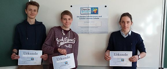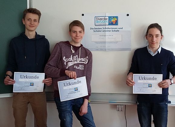 Diercke Wissen ist ein Schülerwettbewerb für 12- bis 16-jährige Schüler in Deutschland. Er ist mit etwa zwischen 245.000 und 310.000 Teilnehmern der größte Wettbewerb seiner Art und findet jährlich von Januar bis Mai statt. Der Wettbewerb testet das geographische Wissen der Schüler und wird vom Verband deutscher Schulgeographen in Zusammenarbeit mit dem Westermann-Verlag ausgetragen. Auch dieses Jahr haben Marienschüler der Jahrgangsstufen 7 bis EF an diesem Wettbewerb teilgenommen und die teils sehr schwierigen Fragen am 18.2.16 beantwortet. Seit dem 17.3. stehen nun die besten drei Teilnehmer fest: Marienschulsieger wurde Erik Böhland aus der EF, nur knapp dahinter auf dem zweiten Platz Ole Pauls ebenfalls aus der EF vor Peter Pierdzoch aus der 9c. Mit Erik und Peter haben es zwei bilinguale Schüler in dem deutschsprachigen Wettbewerb auf die vordersten Plätze geschafft, die damit bewiesen haben, dass sie neben den englischen auch die deutschen Fachbegriffe beherrschen. Wir gratulieren allen drei Marienschülern zu ihrem Erfolg und wünschen Erik nun viel Erfolg in der nächsten Runde des Wettbewerbes!