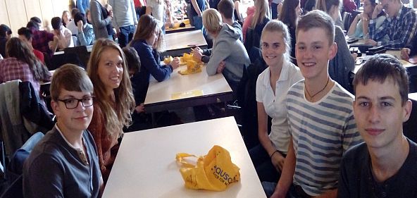 Dies schien sich durchaus gelohnt zu haben, denn nach der Staffel lag ein Schülerteam punktgleich mit dem Lehrer-Team vorn und damit sogar knapp vor den Professoren/Doktoren. Mit 210 von 500 möglichen Punkten lag das Marienschul-Team unter den besten 10 Teams und konnte sich beruhigt auf den Nachmittagswettbewerb freuen. Zum Vergleich: die beiden besten Teams wiesen 340 Punkte auf ihrem Konto auf, was nur etwa einen Unterschied von 4 bis 5 richtig beantworteten Fragen ausmachte. Beide Teams, sowohl das Marienschul-Team als auch das Lehrer-Dream-Team, an dem erneut Hr. Soika teilnahm, konnte damit ihre Punktezahlen aus dem vergangenen Jahr verbessern.
