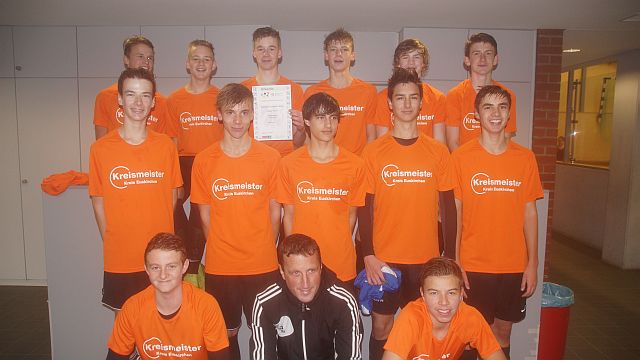 Nachdem zwei Mädchenmannschaften vorgelegt hatten, zogen nun die Jungs in der Wettkampfklasse II nach und wurden ihrerseits überlegen Kreismeister im Fußball. In der Vorrunde gab es bereits deutliche Siege gegen Weilerswist und die Kaplan-Kellermann Realschule, wobei die Mannschaft dort mit taktischer Disziplin und einer für Schulmannschaften nicht selbstverständlichen mannschaftlichen Geschlossenheit auftrat. Hier trat das Emil-Fischer Gymnasium leider trotz Zusage nicht an.