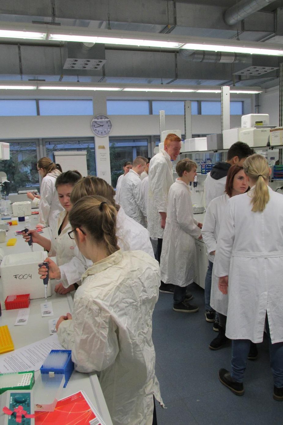 Im Rahmen der Unterrichtsreihe Genetik besuchten die Biologie-Leistungskurse der Q1 Ende Januar ein Genetiklabor an der Hochschule Bonn-Rhein-Sieg. Befasst wurde sich insbesondere mit Versuchen zur DNA, die mit den im Unterricht durchgenommenen Themen zusammenhingen, jedoch den Schülern vorher nicht bekannt waren. Eine Führung durch weitere Labore im Bereich Gentechnik sowie andere Abteile dieses Fachbereichs war ebenfalls inbegriffen.