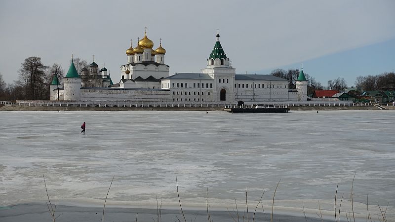 Bereits auf dem Hinflug nach Moskau mit einer russischen Fluggesellschaft konnten die Oberstufenschüler beim Bestellen des Essens und der Getränke ihre Sprachkenntnisse anwenden. Auf der anschließenden fünfstündigen Fahrt mit dem Kleinbus nach Kostroma machten sie sich ein Bild von der beeindruckenden Größe Moskaus und der unendlich erscheinenden Weite der noch verschneiten russischen Landschaft, bis der Bus über die einen Kilometer lange Wolgabrücke auf das Zentrum Kostromas zufuhr, wo die Gymnasiasten von ihren Gastfamilien herzlich in Empfang genommen wurden.