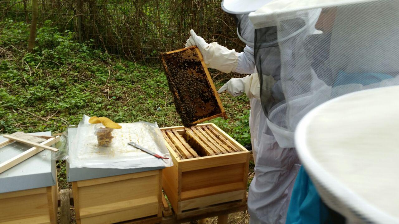 Seit dem letzten Schultag vor den Osterferien kann sich die Schulimkerei über ihr eigenes Bienenvolk freuen. Circa 10.000 Bienen sind nun im Schulgarten wohnhaft und sorgen für viel Freude und auch viel Arbeit. So trafen wir Jungimker uns auch in den Osterferien regelmäßig an der Schule, um unser Volk zu pflegen. Wenn das Wetter wärmer wird und die Bienen viel Honig eintragen können, werden wir Ende Mai das erste Mal Honig schleudern können. Diesen werden wir dann in Gläser abfüllen und in der Schule verkaufen. Auch Bienenwachskerzen werden wir bald wieder anbieten können.