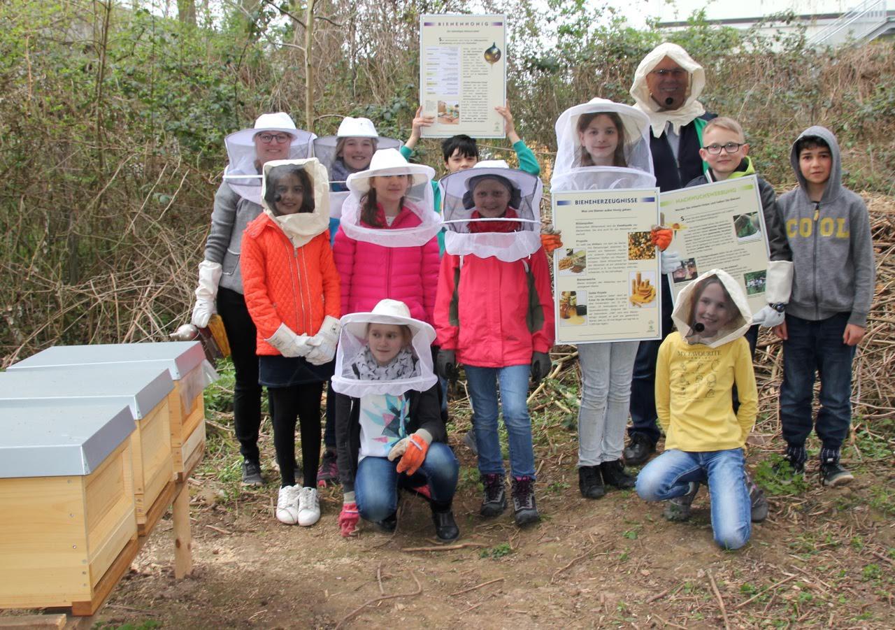 Steffi Lehnen, Kai Ries und die Jungimker der Klasse 5