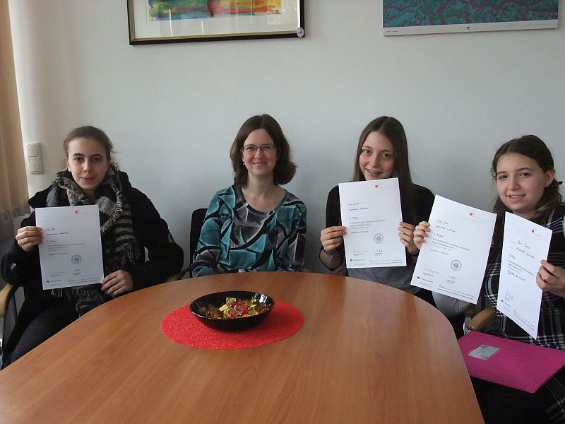 Celine Breuer (9c), Cora Jostock (9c), Annika Kannen (9e) und Jule Kluß (9e) sind im Schulentscheid gegeneinander angetreten. Das Thema lautete: