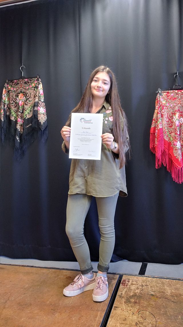 Alle Teilnehmer und Schiedsrichterinnen bekamen eine Urkunde und dazu eine Tasche mit je einem Buch, einem Schlüsselanhänger, einer Powerbank und diversen Informationsblättern zu Russischaustauschen. Nach der Siegerehrung machten wir uns alle erschöpft und mit neu gesammelten Erfahrungen auf den Heimweg.