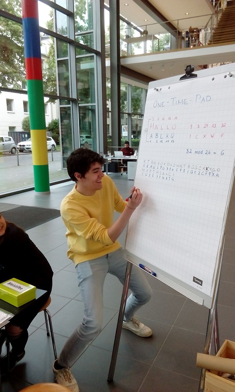 In den vergangenen zwei Wochen beschäftigte sich der Mathematik-Leistungskurs der Q1 mit einem Thema außerhalb des Lehrplans, der Kryptographie. Anlass dazu bot eine Exkursion in das Arithmeum in Bonn, bei welcher sich die SchülerInnen zunächst mit der Geschichte des Zählens und der Rechenmaschinen auseinandersetzten, um in einem anschließenden Workshop grundlegende Verschlüsselungsverfahren kennenzulernen. Dies wurde im Unterricht aufgegriffen und vertieft, sodass das Prinzip des modernen RSA – Verfahrens erarbeitet wurde. Hierbei sorgte eine Einführung in die Modulo-Rechnung für einen kleinen Ausblick auf die Mathematik jenseits der Schule. Abschließend wurde das Schicksal des Mathematikers Alan Turing, der maßgeblich an der Entschlüsselung der Enigma beteiligt war, behandelt. Insgesamt konnte sich der Kurs so einen Einblick in ein spannendes Feld der Mathematik verschaffen.