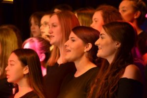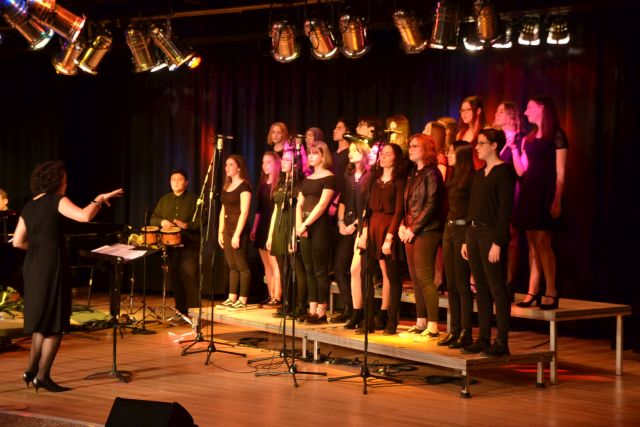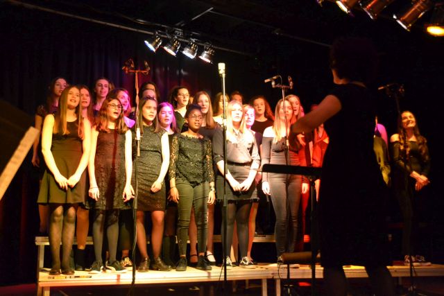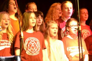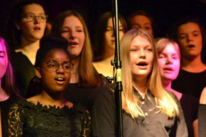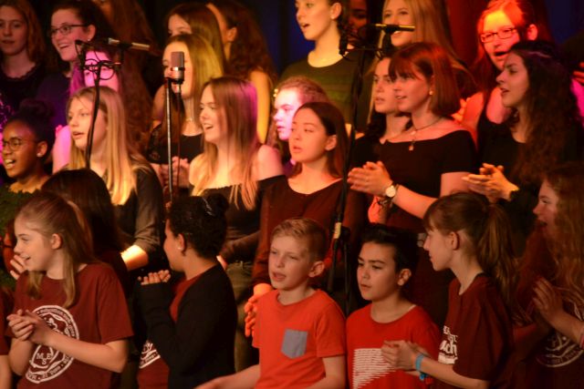 Voller Leidenschaft präsentierten die rund 100 Schülerinnen und Schüler im Alter zwischen zehn und 20 Jahren ihre Lieblingslieder und schon bald klatschte das gesamte Publikum vom Schwung der Chöre angesteckt im Takt. Meist mit der Unterstützung einer vierköpfigen Band bewiesen die jungen Sängerinnen jedoch bei Stücken wie „Call your Girlfriend“ ihre Kreativität, indem sie zum Titel passend alte Telefone zum Schlagen des Taktes nutzen. Obwohl Barbara Luke am Sonntag bewusst ein gekürztes Programm ausgewählt hatte, damit alle Beteiligten wieder rechtzeitig zum Euskirchener Tatort vor dem Fernseher sitzen konnten, wie die Chorleiterin scherzhaft bemerkte, fanden sie Zeit um zwei Chormitgliedern ein kurzes Geburtstagsständchen zu bringen. Einziger Wehrmutstropfen des Abends war die Tatsache, dass das von einem Schüler selbst arrangierte Stück zum Film „Bohemian Rhapsody“ kurzfristig aus Krankheitsgründen gestrichen werden musste. „Ich bin jedoch zuversichtlich, dass wir dies in naher Zukunft nachholen können“, versicherte Luke. „Schließlich ist heute nicht der letzte Abend, an dem wir alle gemeinsam unsere Liebe zur Musik zum Ausdruck bringen können.“