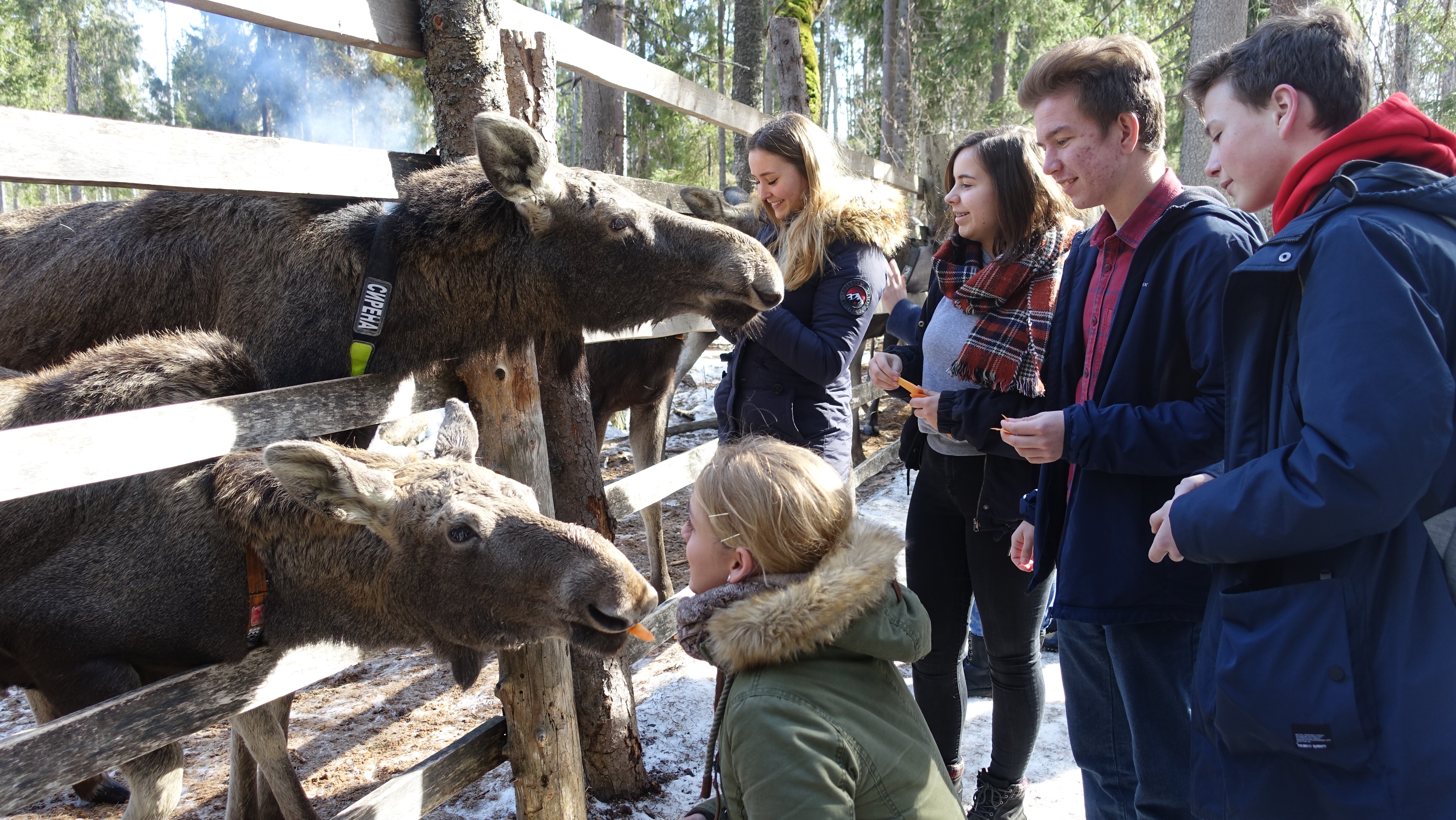 Neben dem Unterricht am 33. Gymnasium stand die Begegnung mit der russischen Kultur und auch der Natur auf dem Programm. Zu den vielen Highlights gehörten die Fahrt ins altehrwürdige Jaroslawl, das Füttern der Elche im verschneiten Winterquartier, die Teilnahme am integrativen Hallen-Fußballturnier und der Abstecher zum Roten Platz in Moskau am Rückreisetag. Das Wetter hätte nicht besser sein können – ein strahlend blauer Himmel über schneebedeckten Flächen. Selbstverständlich genossen die Marienschülerinnen und –schüler auch die leckere, vielseitige russische Küche und die sprichwörtliche russische Gastfreundschaft.