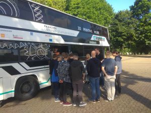 Am 06.06.2019 haben die Schüler/innen der Informatikkurse von Herrn Kranz und Herrn Schnicke an einem 3D-Druck-Kurs teilgenommen. Diese Veranstaltung wurde von Herrn Brinkmann über die FH-Aachen organisiert. Der FabBus – setzt sich zusammen aus Fabber (digital fabricator) und Bus – ist ein Projekt der FH Aachen, mit dem Ziel die Technologie des 3D-Druckens an Schulen und in Unternehmen zu fördern. In diesem Bus befinden sich mehrere Arbeitsplätze mit 3D-Druckern, an denen die Schüler Ihrer Kreativität freien Lauf lassen konnten.