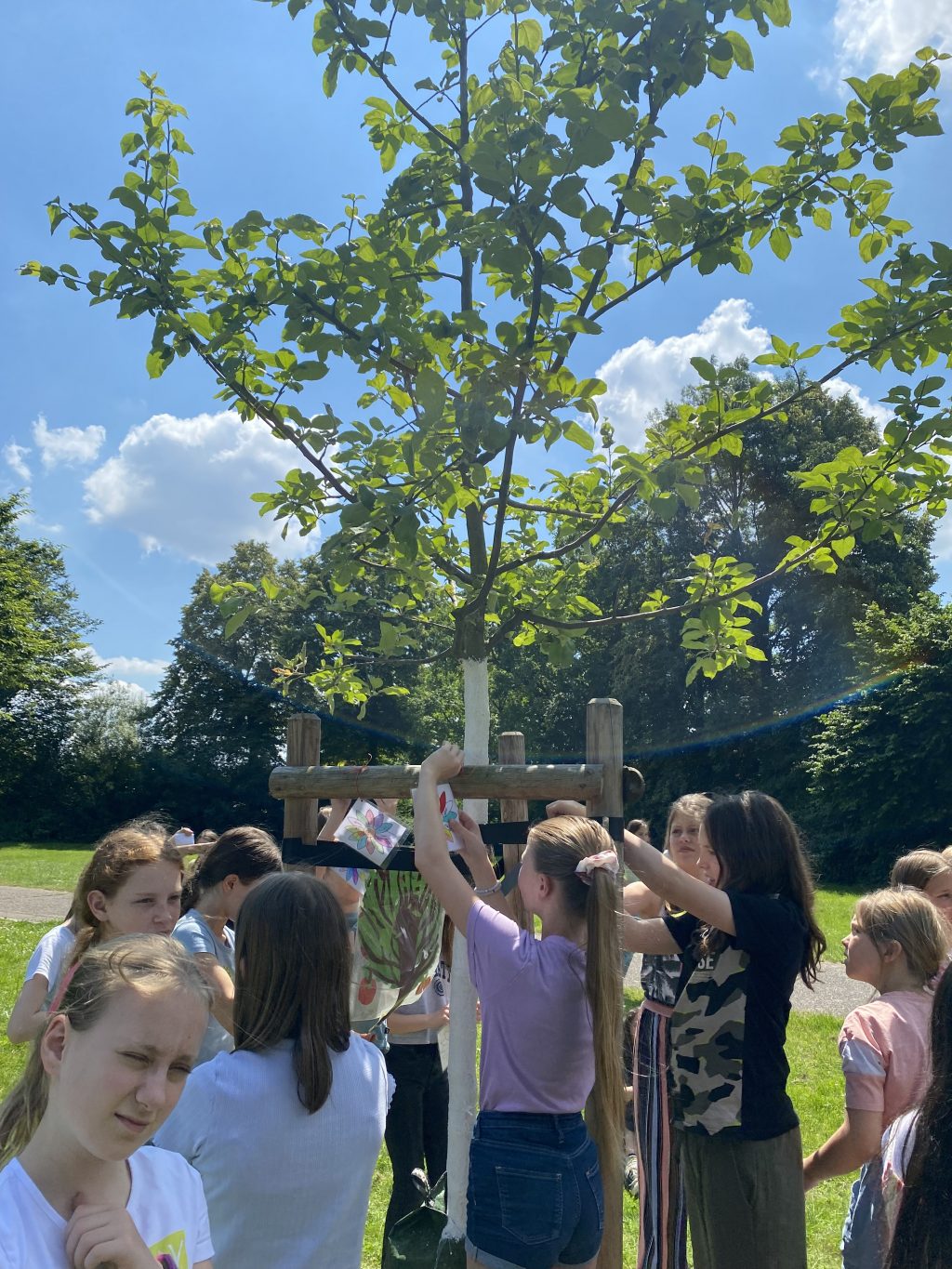 Am 23.6 2024 haben wir, der Religionskurs der 5. Klasse von Frau Limbrock und Frau Drehsen, einen Ausflug zum Friedensbaum der Religionen gemacht. Vor dem Ausflug haben wir Fragen zum Baum aufgeschrieben, die wir zum Ausflug mitgenommen haben. Außerdem haben wir einen Apfelbaum gebastelt. Jeder aus unserer Klasse hat einen Apfel gebastelt, den wir anschließend…
