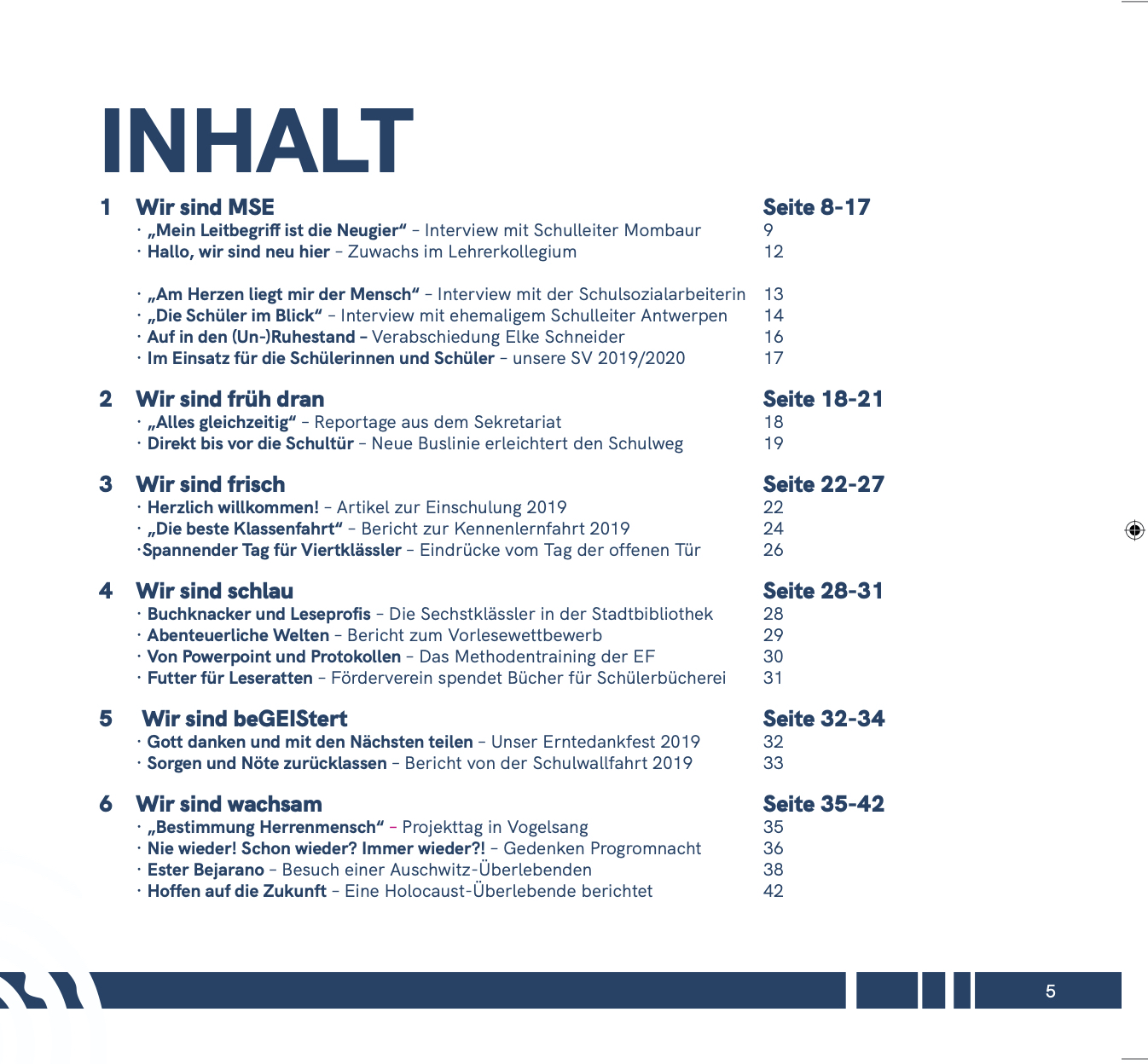 Portraitiert werden soll so die Schule – mit den Menschen, die die MSE ausmachen, ausmachten und ausmachen werden.