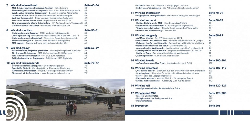 Jede Familie erhält also ein Exemplar und über die Klassenlehrerinnen und Klassenlehrer bzw. bestimmte Fächer in der Oberstufe sammeln wir das Geld ein. Wenn eine Familie mehrere Kinder an der MSE hat, wird dies alles über das jüngste Kind organisiert, auf Wunsch können aber natürlich alle im Sekretariat auch noch ein weiteres, eigenes Exemplar erwerben, solange der Vorrat reicht.