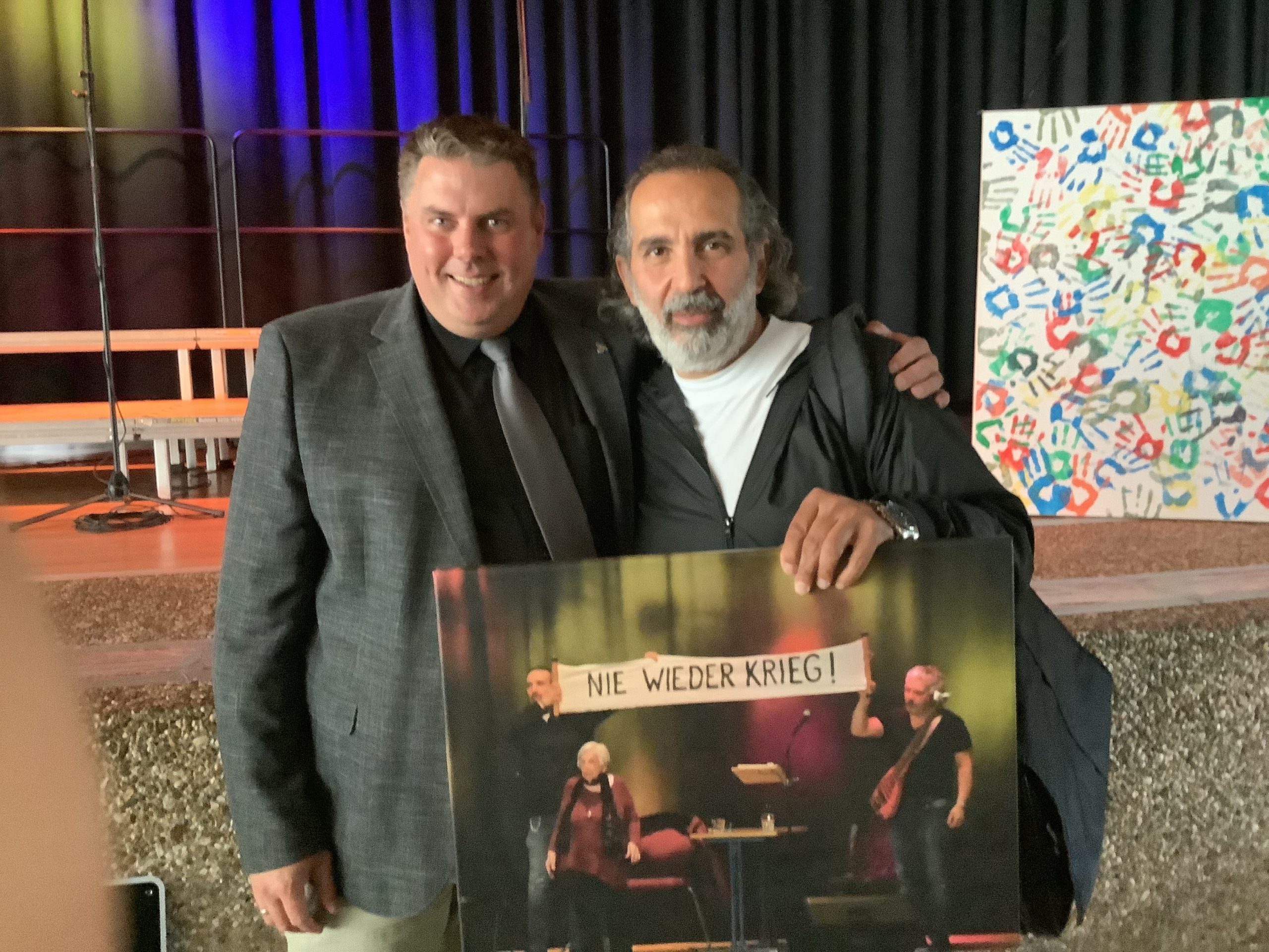 Als Gäste waren nicht nur der Bürgermeister der Stadt Euskirchen gekommen, sondern auch Vertreter des Kreises, des Stadtmuseums und der Eltern der Marienschüler geladen. Unser Pate, der uns in weiteren Projekten im Netzwerk „Schule mit Courage“ unterstützen wird, Kutlu Yurtseven, machte mit seinen Worten und Liedern eine klare Botschaft gegen Rassismus deutlich.
