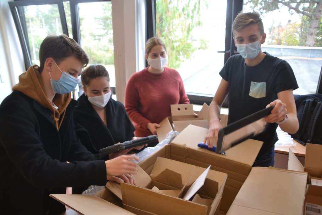 Freudestrahlend nahmen die Mitglieder der Schülervertretung die Pakete entgegen. So schnell die iPads aus ihren Kartons befreit waren, so schnell war auch die Software eingerichtet. „Die digitale Lernplattform ist innerhalb weniger Minuten einsatzbereit, ohne sich vorher durch eine lange Liste von Einstellungen wühlen zu müssen“, freute sich Benjamin Schnicke.