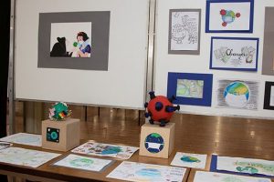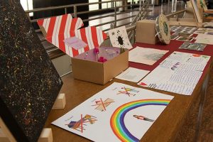 Lehrerin und Projektleiterin Marion Kleinebreil berichtete über die Entstehungsgeschichte der Ausstellung. Die war anfangs als kreative Hausaufgabe geplant. Das Kollegium war von den Ergebnissen aber so begeistert, dass schnell die Idee entstand, die Arbeiten auch der Öffentlichkeit zu präsentieren. Mittlerweile ist das Projekt sogar als Beitrag zum Jugendkulturpreis eingereicht worden. Schulleiter Mombauer bemerkte am Rand der Veranstaltung, dass sie als Lehrer einen wundervollen Beruf hätten: „Wir können Menschen wachsen sehen!“