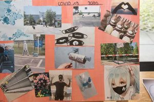 Mit Texten, Collagen, Bildern, aber auch Brettspielen, Videos, Fotos und Skulpturen haben die Schüler ihren Alltag in ungewöhnlichen Zeiten reflektiert. Mal humorvoll, wie in einer Installation zum Zeitablauf vom Beginn der Schutzmaßnahmen mit geschniegelter Frisur bis zur Wuschelmähne im Lockdown, mal sachlich informativ zu Themen wie Hygiene und Masken, immer wieder auch sehr persönlich und emotional, etwa wenn es um die Themen Angst um Großeltern, Vermissen von Freunden geht.