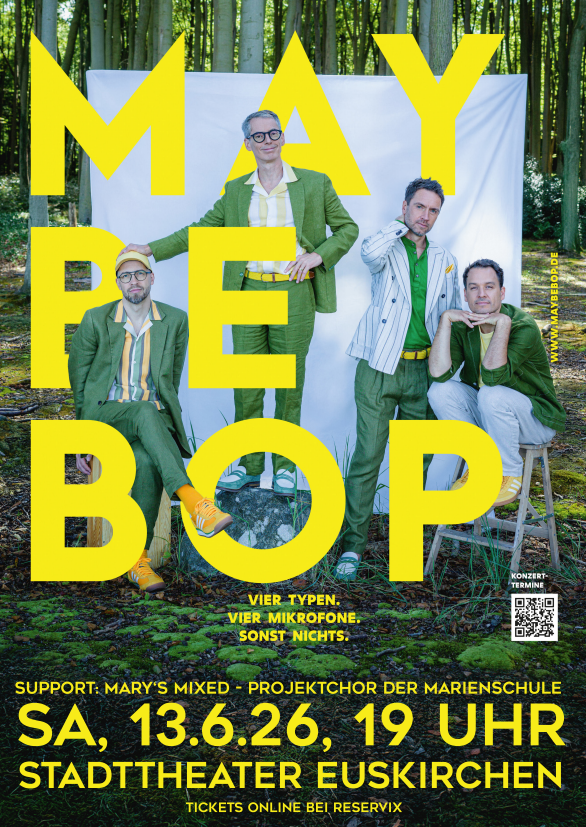 Am Samstag, 13. Juni 2026, ist es so weit: Die A-cappella-Formation MAYBEBOP kommt ins Stadttheater Euskirchen – mit nichts als vier Typen, vier Mikrofonen und jeder Menge musikalischer Raffinesse.