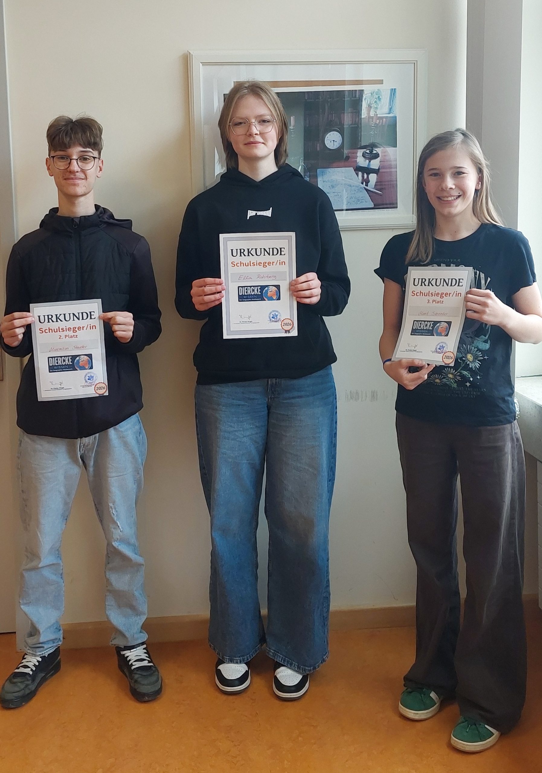 Diercke Wissen ist mit über 30.000 Teilnehmern Deutschlands größter Geographie-Wettbewerb für 12-16-jährige Schülerinnen und Schüler und findet einmal im Jahr statt. Im Frühjahr 2026 fand der Wettbewerb bereits zum 26. Mal statt. Auch Marienschüler/innen haben unter der Leitung von Frau Hofmann und Frau Schuldt daran teilgenommen und in einer ersten Runde die teils sehr schwierigen Fragen, die explizit über das in der Schule vermittelte Wissen hinausgehen, beantwortet.