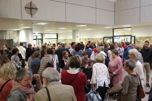 Herr Antwerpen begrüßte in seiner Rede persönlich die drei ältesten Marienschülerinnen, die es sich nicht nehmen ließen an diesem Fest teilzunehmen – großes Erstaunen und großer Applaus für so interessierte 100- und 90jährige ehemalige Schülerinnen. Alle Gäste konnten die erste Version des entstehenden Schulfilmes betrachten und bekamen somit einen Einblick in das aktuelle Schulleben der Marienschule. Auch die später angebotenen Rundgänge durch die Schule, die sich in vielen Teilen stark von früher unterscheidet, fanden viele Interessenten. Dabei wurde so manch eine Anekdoten aus der eigenen Schulzeit zum Besten gegeben.