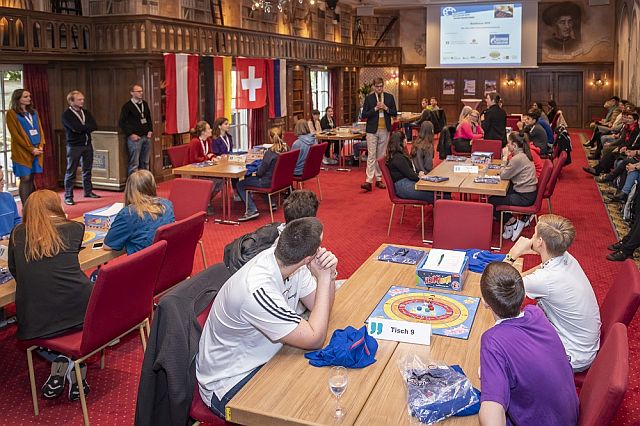 Am 27.09.2019 richtete die Marienschule Euskirchen die Regionalrunde des Bundescups „Spielend Russisch Lernen“ aus. Insgesamt acht Teams aus NRW und Rheinland-Pfalz, jeweils bestehend aus einem Russisch-Könner und einem Russisch-Nichtkönner, fanden sich an diesem Tag gegen 10 Uhr in unserer Schule ein. Nach einer kurzen Begrüßung und Einstimmung auf das Spiel „New Amici“, bei dem es um das Übersetzen von Vokabeln und Sätzen geht, fingen die Spielrunden an, die an Tischen mit je zwei Teams ausgetragen wurden. Nachdem zwei Runden gespielt worden waren, standen die Finalisten sowie die Teams, die um den dritten und vierten Platz kämpfen würden, fest. Um den Spielenden eine kleine Pause zu ermöglichen, wurden wir von den Russisch-Schülerinnen und -Schülern unserer Schule mit teils typisch russischen Köstlichkeiten verpflegt. Um 12 Uhr begannen dann die beiden finalen Spiele, bei denen wir, Viktoria Hartmann und Julian Jung (beide Q2), uns gegen unsere Kontrahenten durchsetzen konnten und die Einladung zum Bundesfinale im Europapark Rust gewannen.