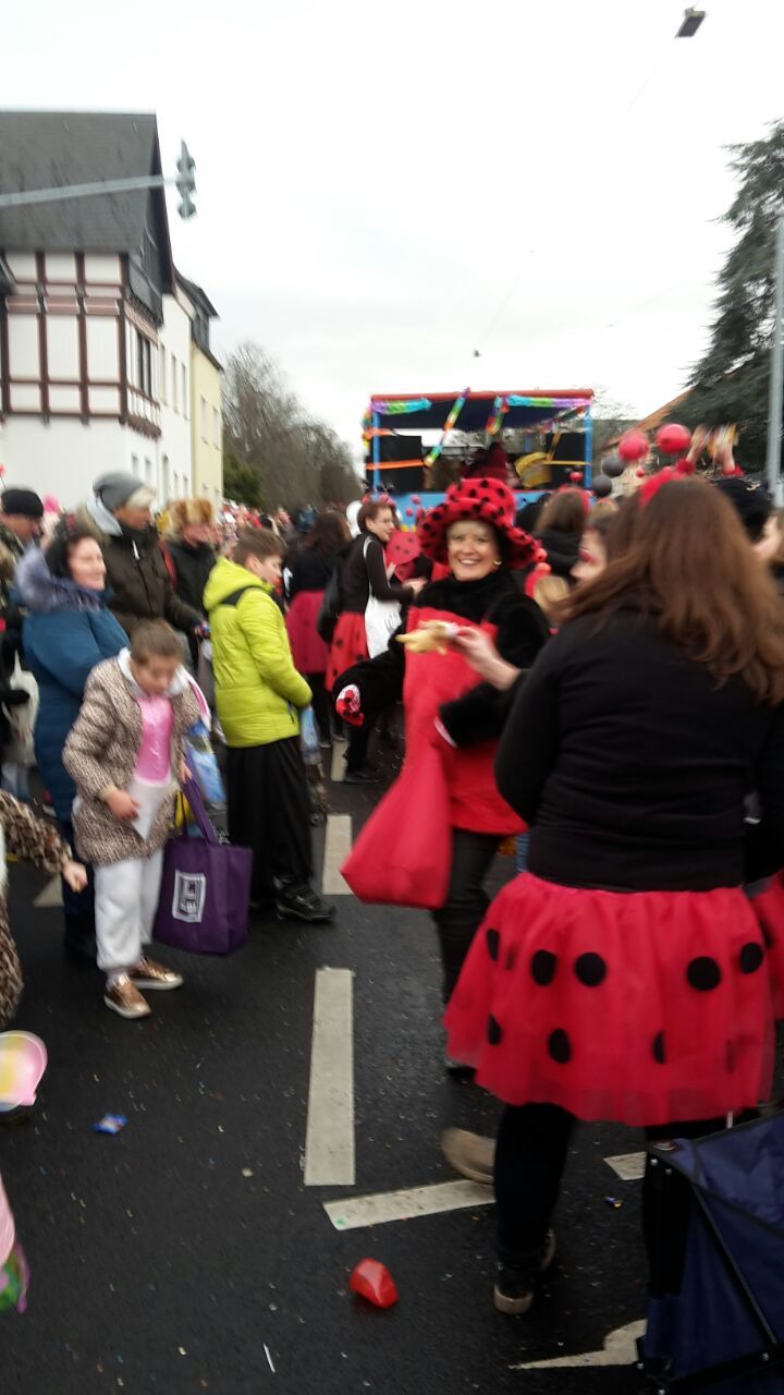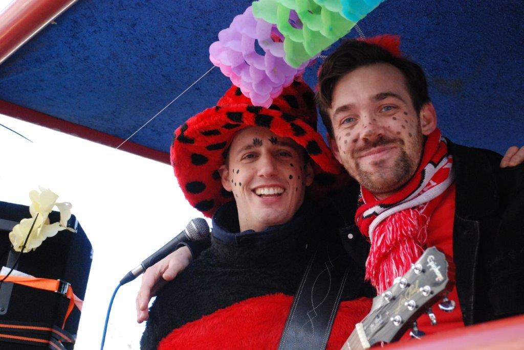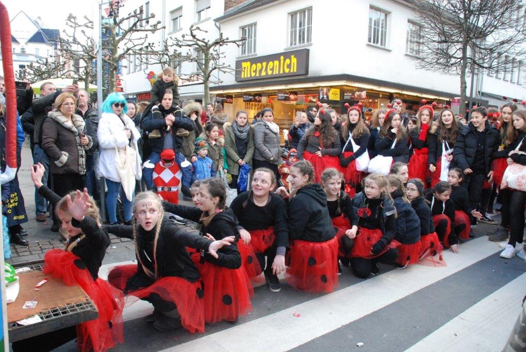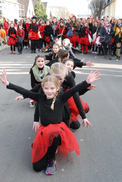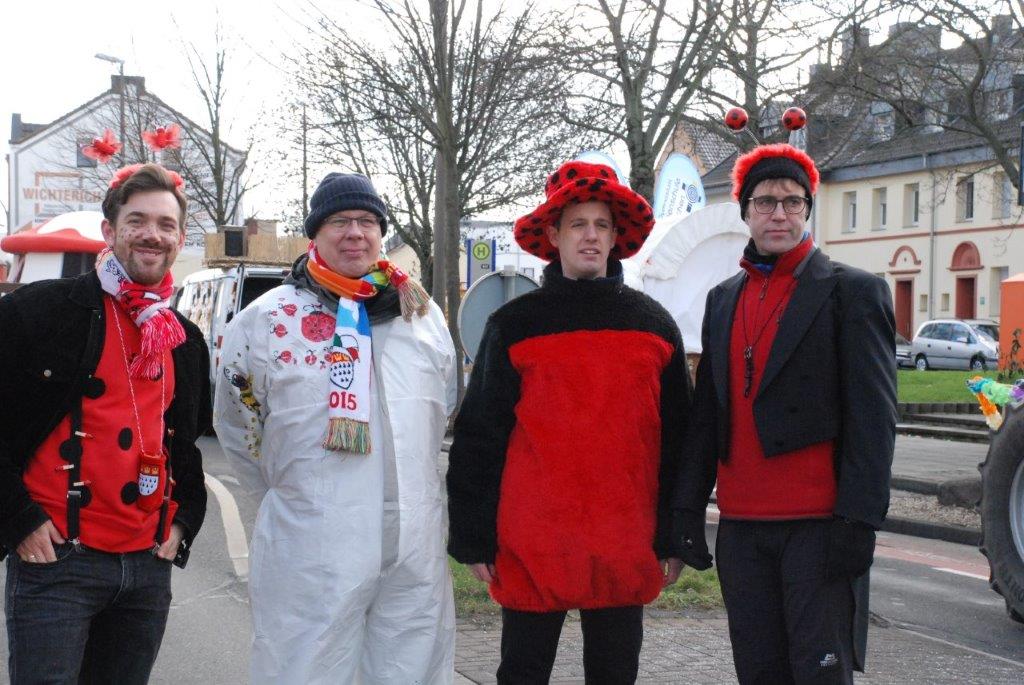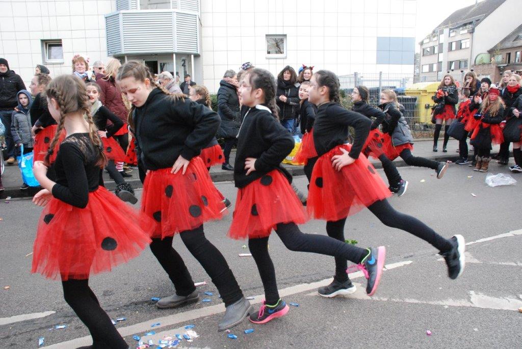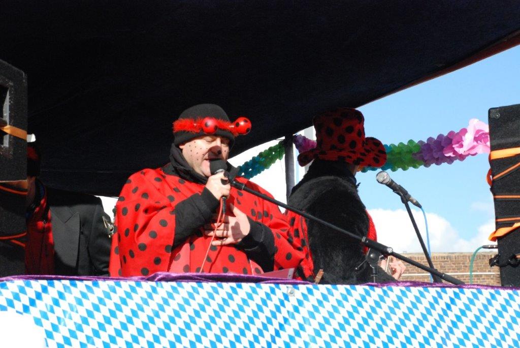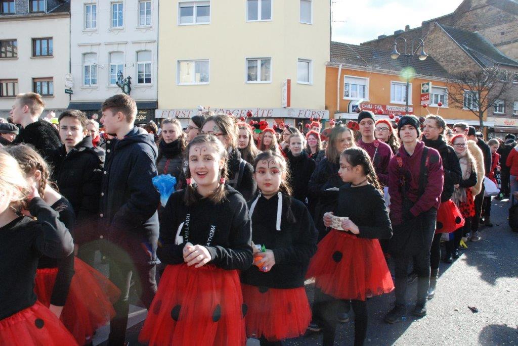 Ein Imker, der seine Bienen im Griff hat, ist keine Seltenheit. Jürgen Antwerpen, der Schulleiter der Marienschule Euskirchen, bewies am Montag jedoch, dass ein Bienenzüchter auch durchaus Talent im Umgang mit Marienkäfern haben kann. Mit Netzhut und Schutzanzug ausgestattet führte er den närrischen Tross auf seinem Oldtimer-Traktor an. Gefolgt von rund 200 Schülerinnen und Schülern in Käferkostümen begleitete er den Rosenmontagszug durch die Euskirchener Innenstadt. Doch nicht nur mit den großen Mengen Kamelle, die die Marienschüler unter den zu tausenden am Straßenrand wartenden Zuschauern verteilten, sorgten sie für Feierstimmung. Musiklehrer Jan Philipp Röser hatte zudem einige Mitglieder der Schulbigbands um sich versammelt und heizte den Euskirchener Jecken mit Live-Musik ein. „Bei einem Karnevalsumzug kommt die Musik oft vom Band“, schilderte Pressesprecher Otmar Dreifke seine Eindrücke. „Inmitten von all diesem närrischen Treiben die Bigband spielen zu hören war wirklich ein einmaliges Erlebnis.“ Ausgelassen zogen die schwarzgepunkteten Marienkäfer durch die Straßen und stimmten lautstark in die Liedvorträge der Bigband ein. „Alle waren von dem Geschehen begeistert“, so Dreifke. „Ich bin sicher, unsere Schüler werden ab sofort regelmäßig an den Euskirchener Karnevalszügen teilnehmen.“