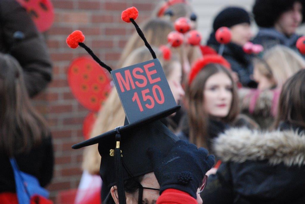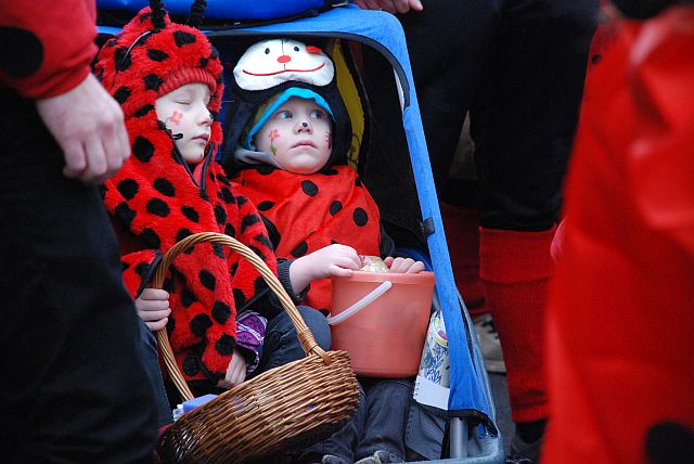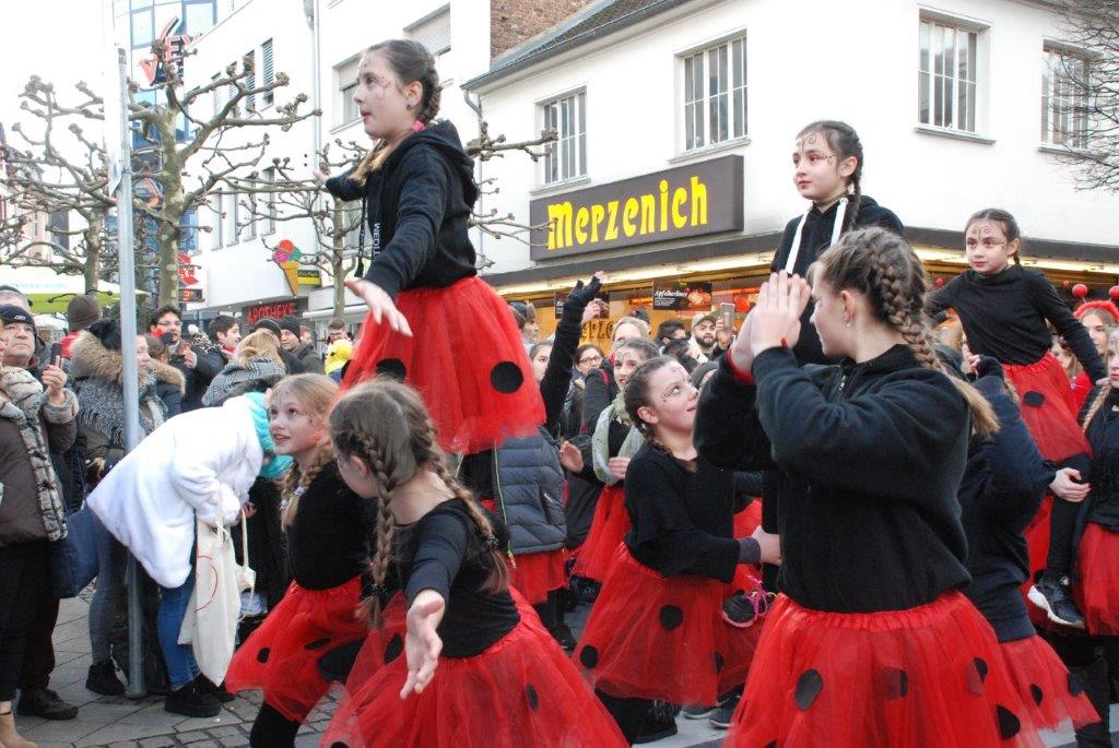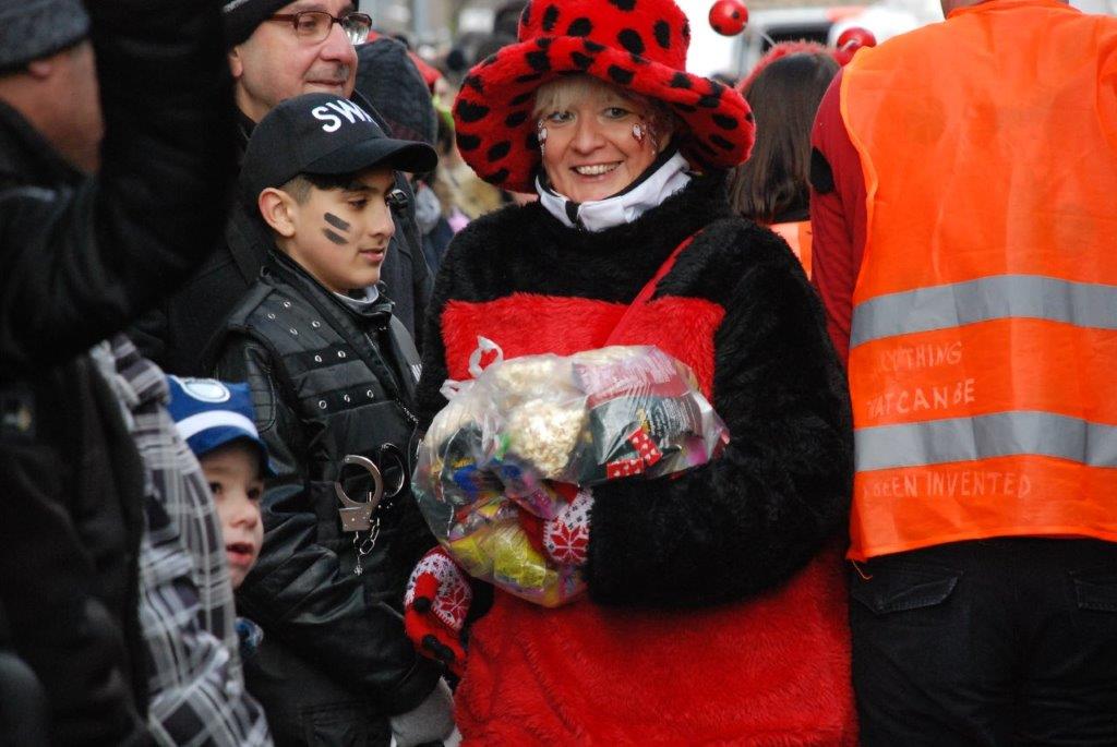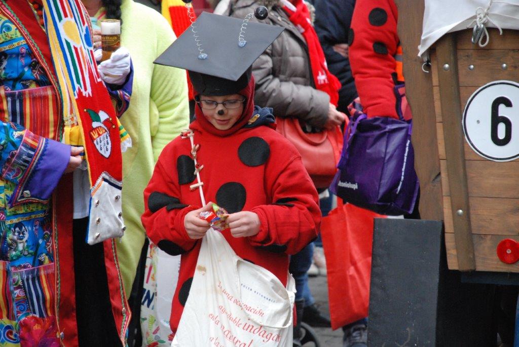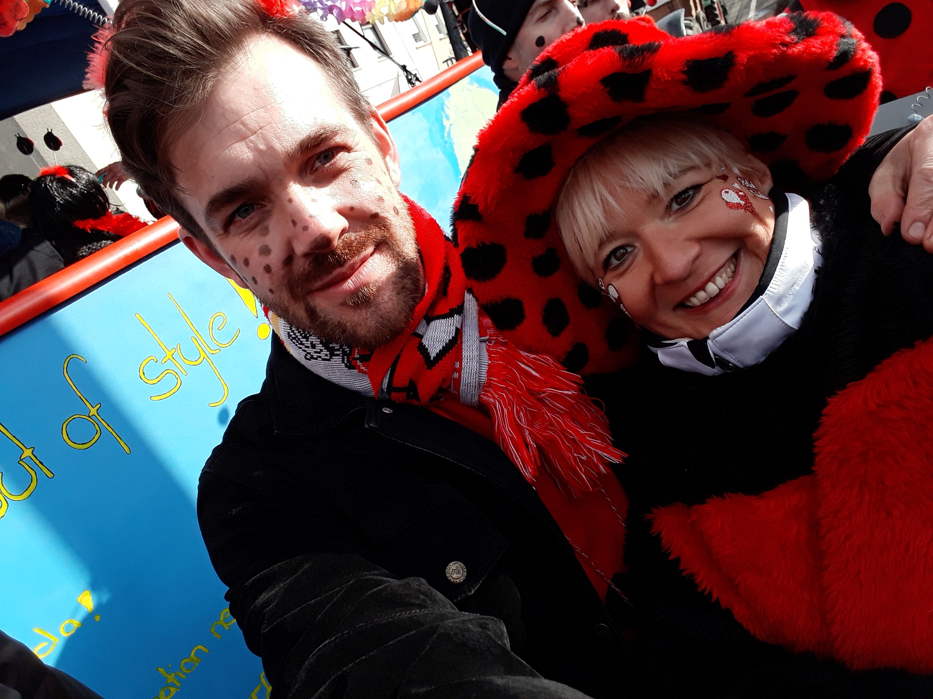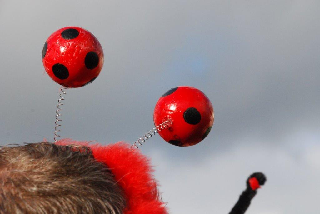 Ein Imker, der seine Bienen im Griff hat, ist keine Seltenheit. Jürgen Antwerpen, der Schulleiter der Marienschule Euskirchen, bewies am Montag jedoch, dass ein Bienenzüchter auch durchaus Talent im Umgang mit Marienkäfern haben kann. Mit Netzhut und Schutzanzug ausgestattet führte er den närrischen Tross auf seinem Oldtimer-Traktor an. Gefolgt von rund 200 Schülerinnen und Schülern in Käferkostümen begleitete er den Rosenmontagszug durch die Euskirchener Innenstadt. Doch nicht nur mit den großen Mengen Kamelle, die die Marienschüler unter den zu tausenden am Straßenrand wartenden Zuschauern verteilten, sorgten sie für Feierstimmung. Musiklehrer Jan Philipp Röser hatte zudem einige Mitglieder der Schulbigbands um sich versammelt und heizte den Euskirchener Jecken mit Live-Musik ein. „Bei einem Karnevalsumzug kommt die Musik oft vom Band“, schilderte Pressesprecher Otmar Dreifke seine Eindrücke. „Inmitten von all diesem närrischen Treiben die Bigband spielen zu hören war wirklich ein einmaliges Erlebnis.“ Ausgelassen zogen die schwarzgepunkteten Marienkäfer durch die Straßen und stimmten lautstark in die Liedvorträge der Bigband ein. „Alle waren von dem Geschehen begeistert“, so Dreifke. „Ich bin sicher, unsere Schüler werden ab sofort regelmäßig an den Euskirchener Karnevalszügen teilnehmen.“