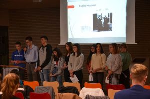 Im Rahmen der Veranstaltung haben Schüler der Gesamtschule Euskirchen, der Marienschule und des Emil Fischer Gymnasiums ihre unterschiedlichen Projekte vorgestellt: Patenschaft über die Stolpersteine in der Stadt, philosophische Auseinandersetzung mit der Frage danach, ob der Mensch gut oder böse ist und das Erinnern an das tragische Schicksal von Eltern und Kindern, die durch den gewaltsamen Tod voneinander getrennt wurden. Ganz gleich mit welchem Projekt, die SchülerInnen haben ihr bemerkenswertes soziales Engagement unmissverständlich unter Beweis gestellt.