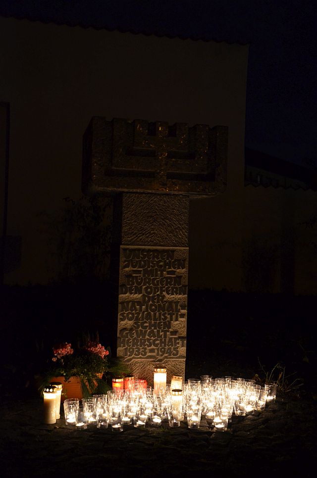 Den Abschluss der Gedenkveranstaltung gestalteten Pfarrer Edgar Hoffmann als Vertreter der evangelischen und der pastorale Referent Robert Sins der katholischen Gemeinden Euskirchens. In einem gemeinsamen Gebet gedachten die beiden Geistlichen der Opfer des Holocausts und führten anschließend die Lichterprozession zum Denkmal der ermordeten jüdischen Mitbürger auf dem Annaturmplatz. Dort, wo einmal die Synagoge stand, erwiesen die Anwesenden durch ein auf Deutsch von Pfarrer Hoffmann vorgetragenes jüdisches Gebet und eine Schweigeminute, ihre Ehre.