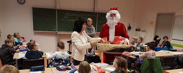 Manche grübelten gerade über einer schweren Matheaufgabe, andere paukten Vokabeln unterschiedlicher Fremdsprachen. Mit welchem Unterrichtsfach die Fünftklässler der Marienschule auch immer beschäftigt waren, am Mittwoch, 6. Dezember, huschte plötzlich ein breites Lächeln über die Gesichter der Jungen und Mädchen. Urplötzlich durften sie nämlich einen unerwarteten Gast im Klassenzimmer begrüßen. Mit rotem Mantel und wallendem Rauschebart zog der Nikolaus von Zimmer zu Zimmer und überall wurde er mit strahlendem Lachen willkommen geheißen. Denn der Nikolaus sorgte nicht nur für eine kurze Pause des Unterrichts, sondern hatte für jeden der rund 130 Fünftklässler einen vom Förderverein der Marienschule gesponserten Wecken im Gepäck. Sichtlich begeistert nahmen die Schülerinnen und Schüler die Geschenke entgegen und schon nach wenigen Minuten zeugte nur noch ein zufriedener Gesichtsausdruck von den bereits verzehrten Leckereien.