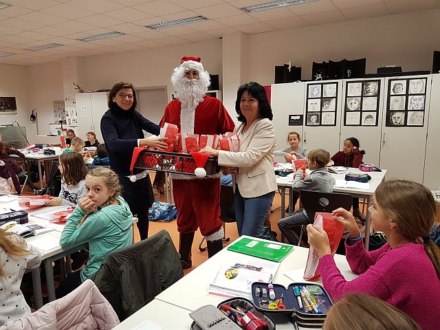 Manche grübelten gerade über einer schweren Matheaufgabe, andere paukten Vokabeln unterschiedlicher Fremdsprachen. Mit welchem Unterrichtsfach die Fünftklässler der Marienschule auch immer beschäftigt waren, am Mittwoch, 6. Dezember, huschte plötzlich ein breites Lächeln über die Gesichter der Jungen und Mädchen. Urplötzlich durften sie nämlich einen unerwarteten Gast im Klassenzimmer begrüßen. Mit rotem Mantel und wallendem Rauschebart zog der Nikolaus von Zimmer zu Zimmer und überall wurde er mit strahlendem Lachen willkommen geheißen. Denn der Nikolaus sorgte nicht nur für eine kurze Pause des Unterrichts, sondern hatte für jeden der rund 130 Fünftklässler einen vom Förderverein der Marienschule gesponserten Wecken im Gepäck. Sichtlich begeistert nahmen die Schülerinnen und Schüler die Geschenke entgegen und schon nach wenigen Minuten zeugte nur noch ein zufriedener Gesichtsausdruck von den bereits verzehrten Leckereien.