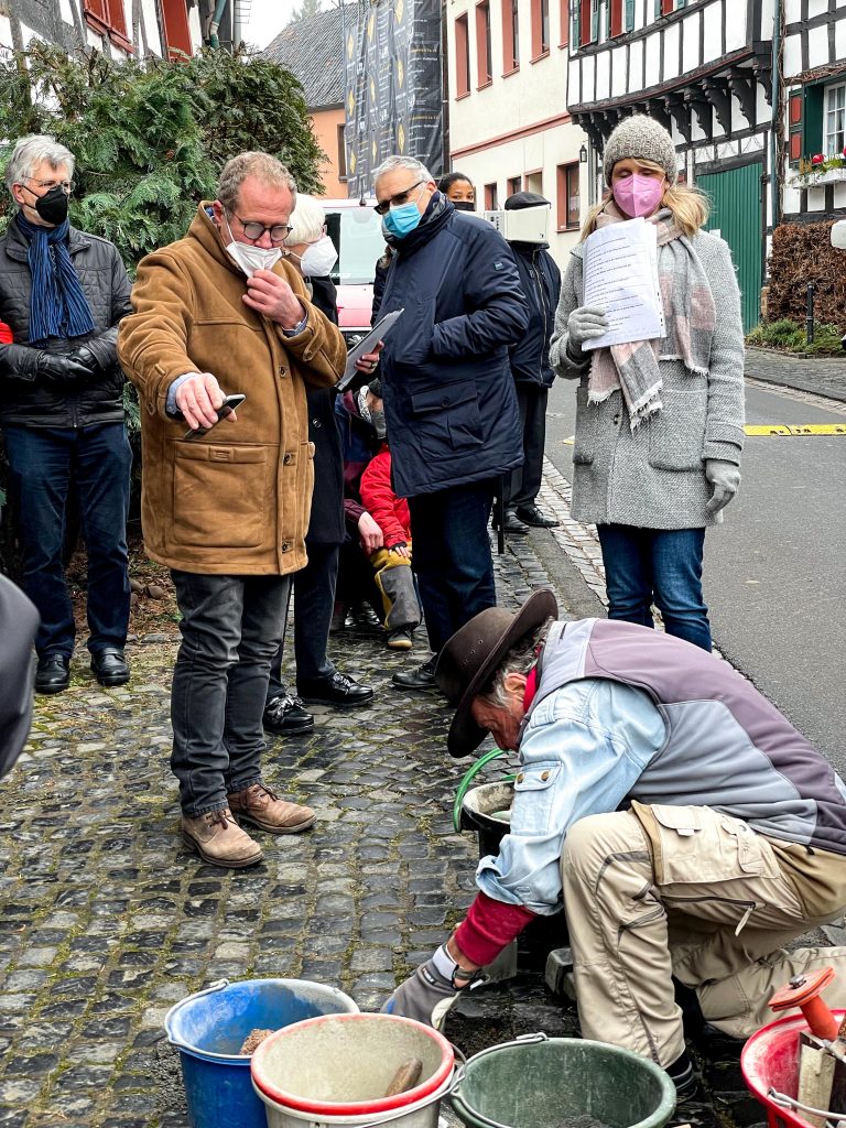 25.01.2022 In Kommern verlegt Gunter Demnig an zwei Stellen Stolpersteine. Für Familie Kaufmann und für die Familie Lewin
