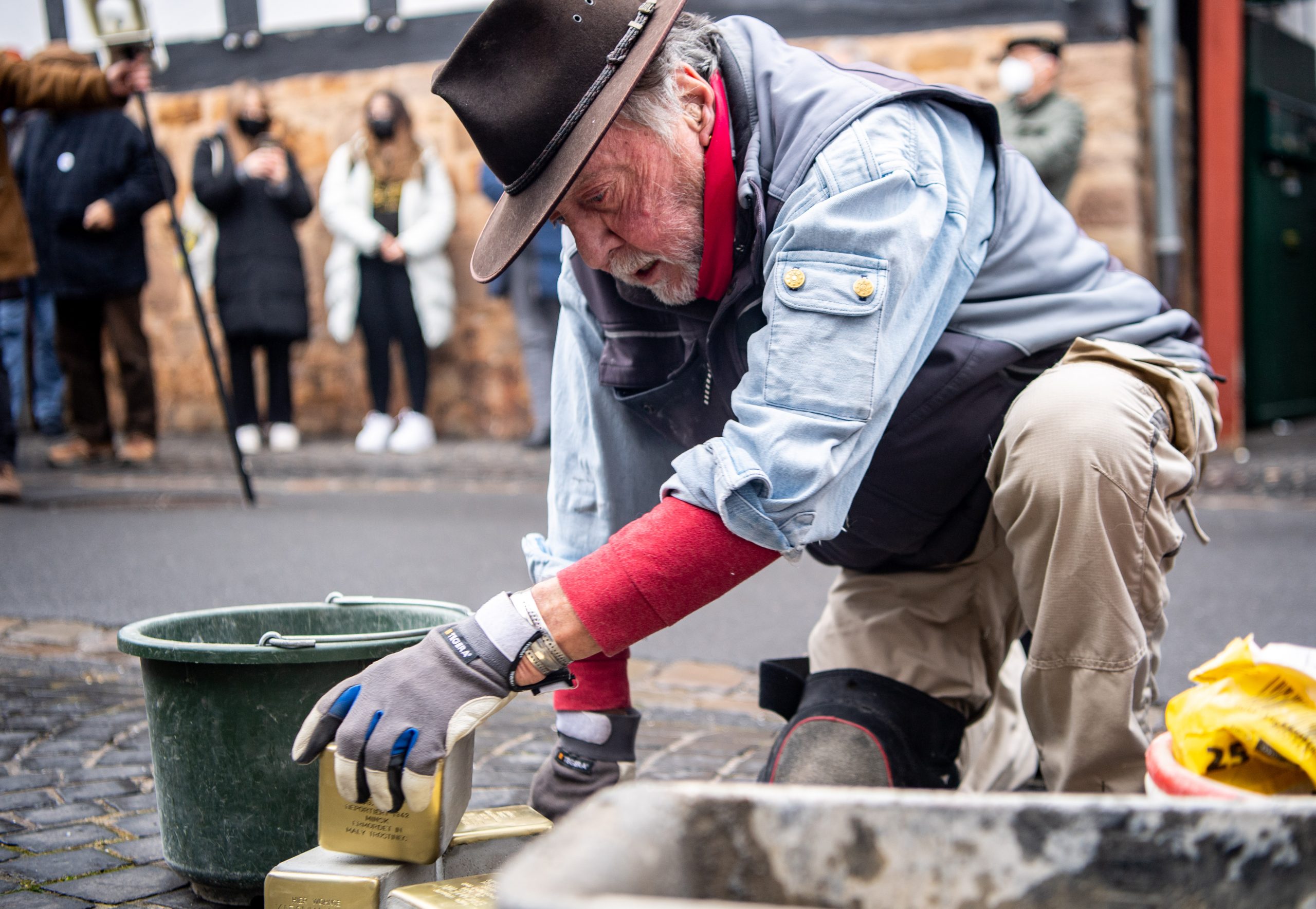 25.01.2022 In Kommern verlegt Gunter Demnig an zwei Stellen Stolpersteine. Für Familie Kaufmann und für die Familie Lewin