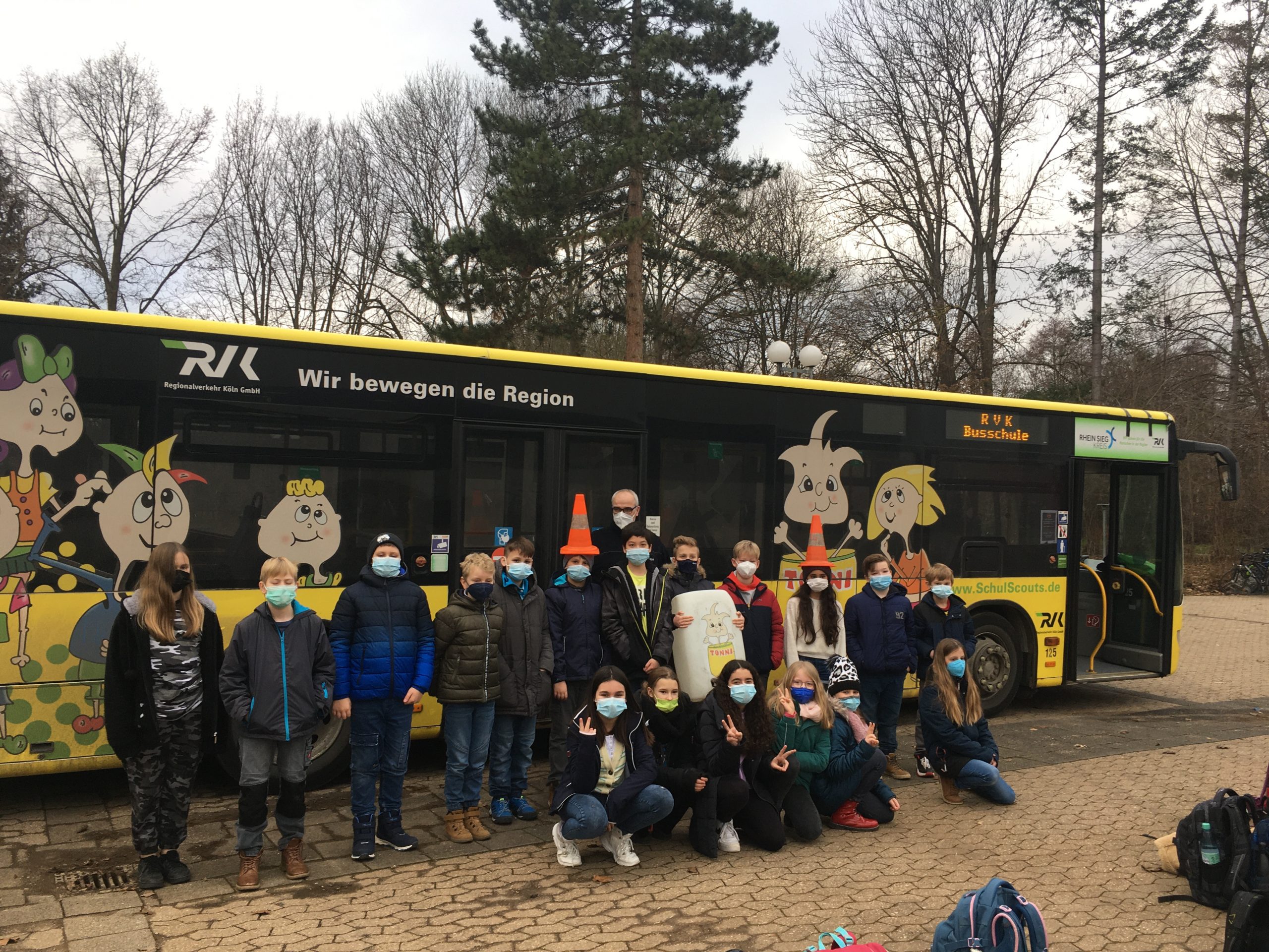 Die fünften Klassen der Marienschule haben im Frühjahr 2022 die Busschule des regionalen Verkehrsunternehmens RVK absolviert. Sie besteht aus einem theoretischen und einem praktischen Teil und einer anschließenden Abschlussstunde, bei der jeder Schüler und jede Schülerin eine Urkunde erhält. Hier berichten Schüler der Klasse 5b von ihrer Teilnahme: