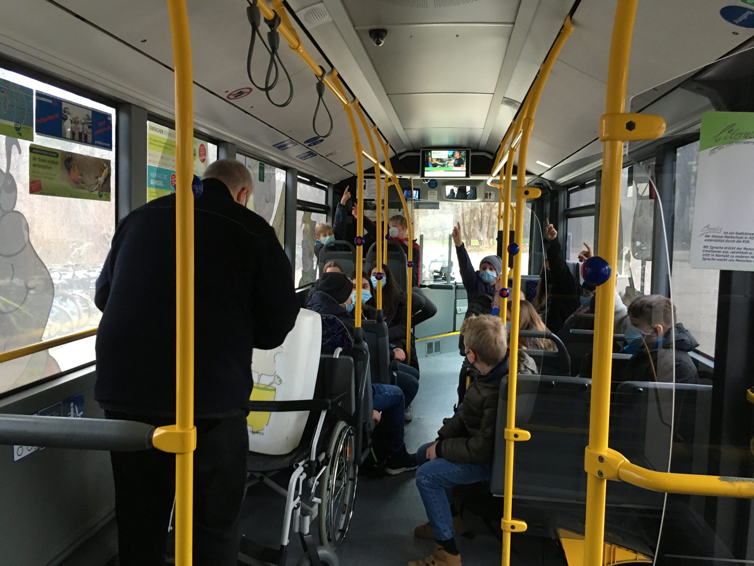 Auch vom das richtigen Verhalten im Bus handelte das Video: Man soll nicht laut sein und den Busfahrer nicht während der Fahr ansprechen. Wir finden, wir haben sehr viel über die Busregeln gelernt: