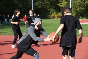 Die Sporthalle selbst ist nach der Überschwemmung leider weiterhin nicht bespielbar. Ebenfalls von der Flut betroffen sind der Keller und weitere Außenanlagen der Schule. Umso mehr freuten sich alle, dass das Training draußen möglich war.