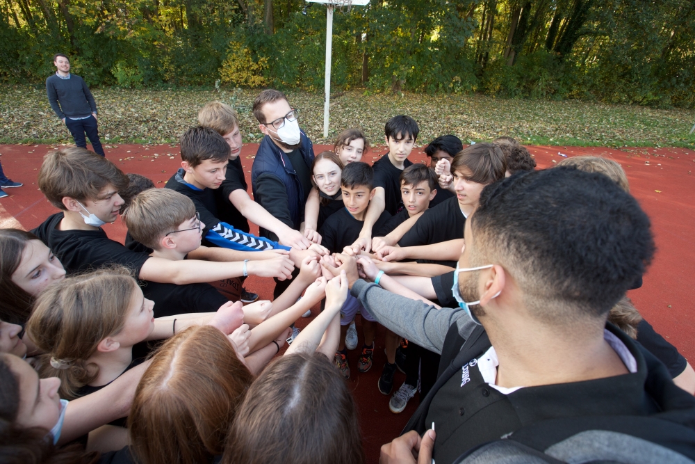 Die Sporthalle selbst ist nach der Überschwemmung leider weiterhin nicht bespielbar. Ebenfalls von der Flut betroffen sind der Keller und weitere Außenanlagen der Schule. Umso mehr freuten sich alle, dass das Training draußen möglich war.