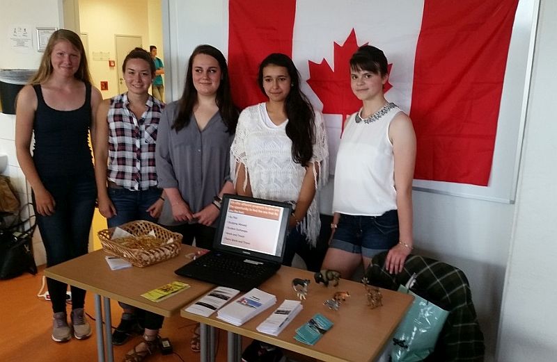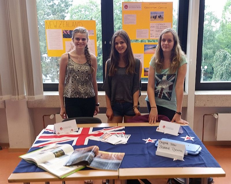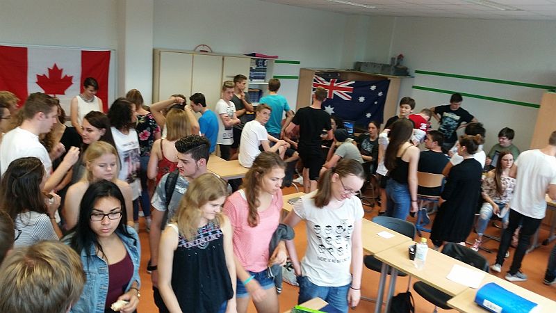 In the current semester the English class of Mr Bessel has been dealing with the topic „Work and Travel“. The students were divided into groups and were supposed to pick a country they are interested in. The individual groups were advised to learn in several hours about „Work and Travel“-programs in their respective country and prepare an exhibition stand for a travel trade fair which was presented to other classes on June 24th. Our group had picked the USA and we chose the organization AIFS „Camp America“. Our class has been working on the topic „Going Places“ and „Work and Travel“ fitted perfecty as you can get to know a lot of new places and cultures. My personal opinion on the subject „Work and Travel“ was very positive, since many students want to go abroad after graduating and thus creating a little fair like we did was an appropriate preparation.