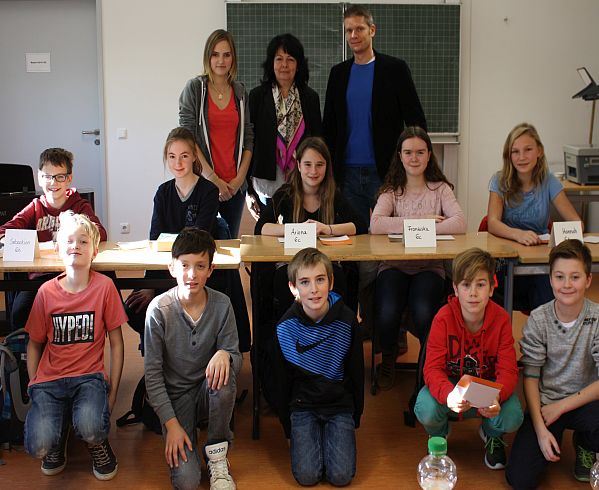 Am Mittwoch, den 09.12.2015, fand unser diesjähriger Vorlesewettbewerb der 6.Klassen statt. Insgesamt hatten sich im Vorfeld je zwei Schülerinnen und Schüler aus jeder 6.Klasse im klasseninternen Wettbewerb gegen die anderen Mitschülerinnen und Mitschüler durchgesetzt. Die 6a wurde von Samuel und Jan vertreten, die 6b von Sebastian und Miriam, die 6c stellte Ariona und Franziska, Lucas und Hannah traten für die 6d an und die 6e schickte Johannes und Quentin ins Rennen. Alle zehn Kandidaten präsentierten sich sehr gut vorbereitet und die Beiträge waren insgesamt von sehr hoher Qualität. Die Jury, bestehend aus Frau Kückelhaus (Mitglied des Fördervereins), Herrn Binder und der Q1-Schülerin Anna Dissemont, lauschte gebannt den Vorträgen unserer Schülerinnen und Schüler. Es gelang den Leserinnen und Lesern, dass wir gemeinsam in fantastische Welten eintauchten: Wir gerieten in eine Falle in der heulenden Hütte („Harry Potter und der Gefangene aus Askaban“), wir erlebten hautnah Bilbos Duell mit der Spinne im Düsterwald („Der Hobbit“) sowie „Eragons“ Kampf mit finsteren Wesen. Auch „Gregs Tagebuch“ war erneut ein Renner unter den ausgewählten Jugendromanen und wir erlitten gemeinsam mit Greg Heimweh auf der Schweiß- und Fleißfarm. Durchsetzen konnte sich am Ende des Wettbewerbs Franziska Lüttgen aus der 6c mit einer überzeugenden Lesung aus „Harry Potter und der Stein der Weisen“. Sie verstand es, neben einer präzisen Lesetechnik die Jury durch eine gut ausgewählte Textstelle mitzureißen. Auch die anschließend unbekannte Textstelle aus dem Jugendroman „Brando“ las sie exzellent vor, so dass die Jury Franziska als Schulsiegerin kürte. Alle zehn Kinder erhielten eine Urkunde und einen vom Förderverein gestifteten Büchergutschein. An dieser Stelle möchten wir dem Förderverein für seine großzügige Unterstützung danken.